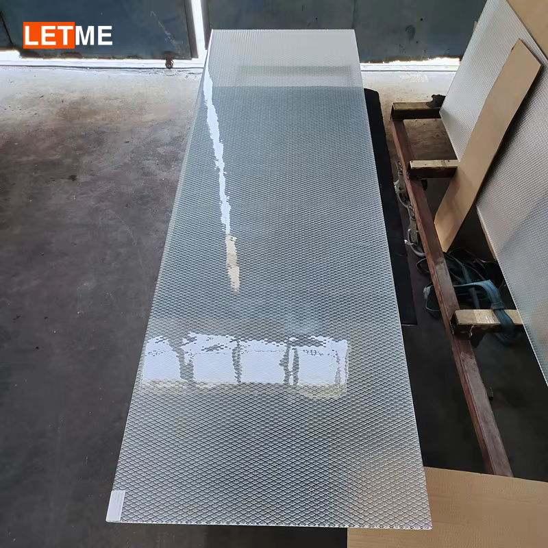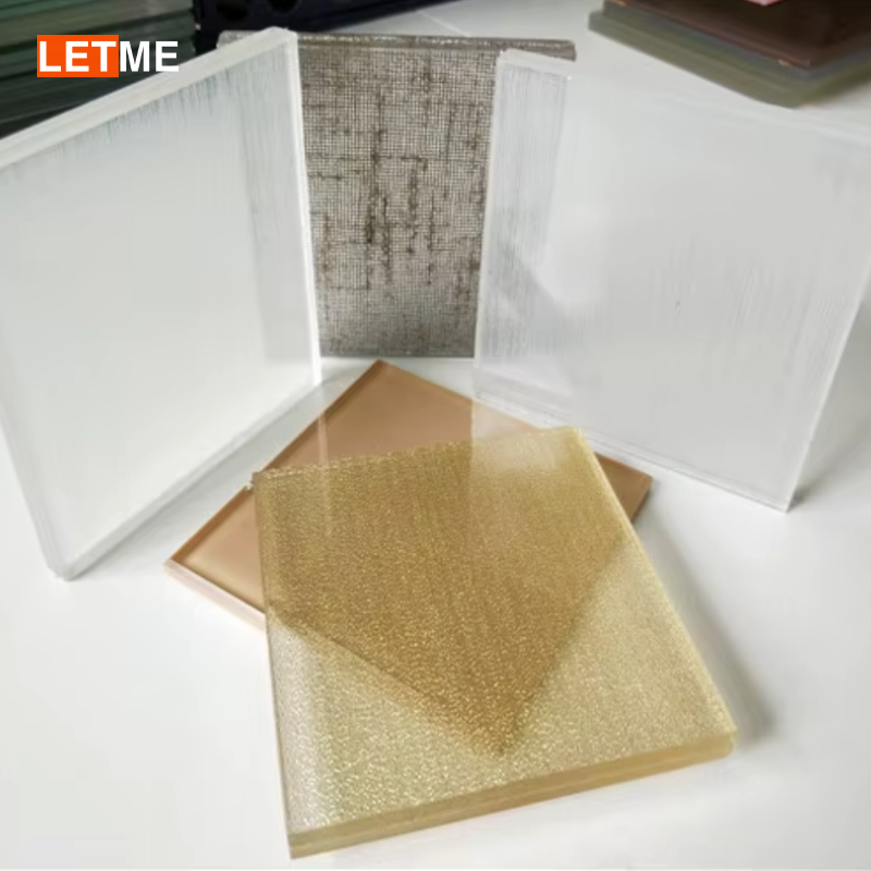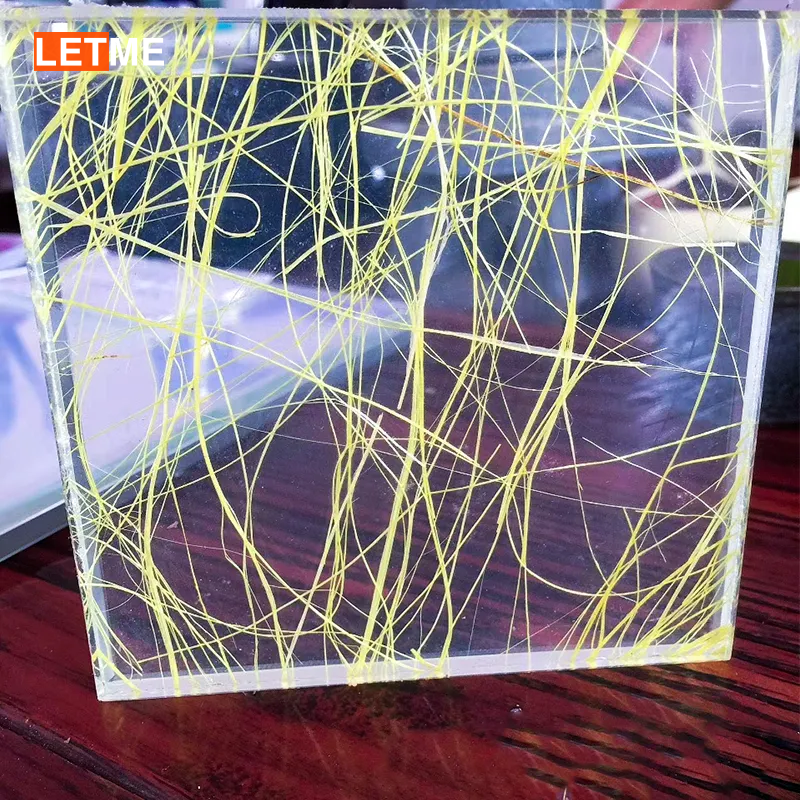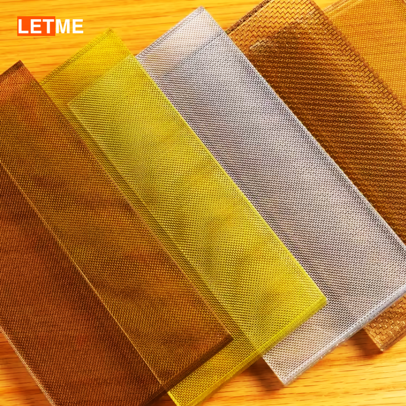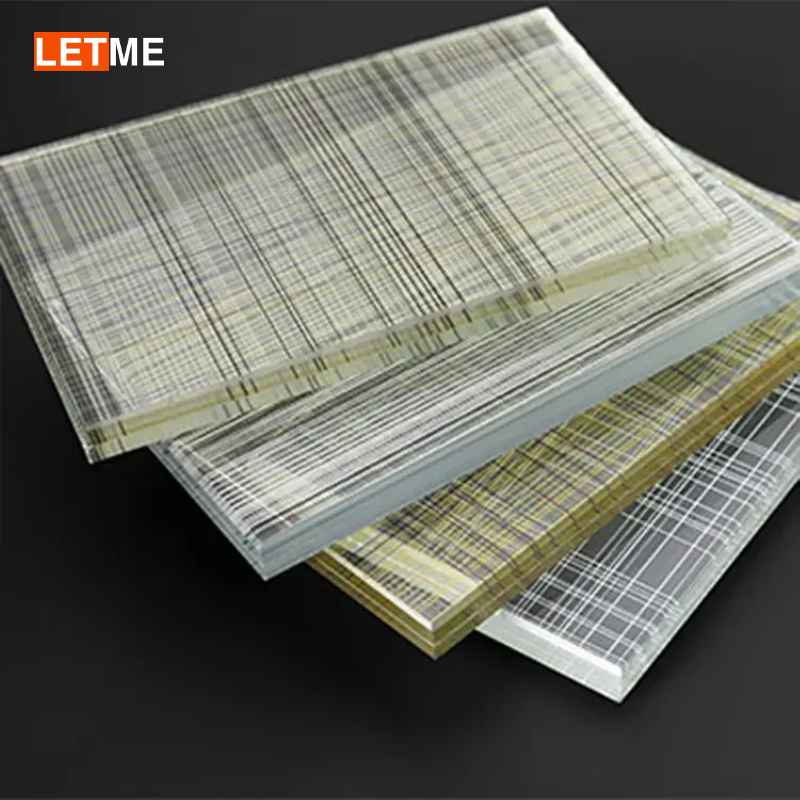 დეკორატიული ლამინირებული მინა გამომწვარი შუშა, დეკორაციისთვის გამოიყენება სხვადასხვა დიზაინის ნეილონის ან ლითონის ბადე