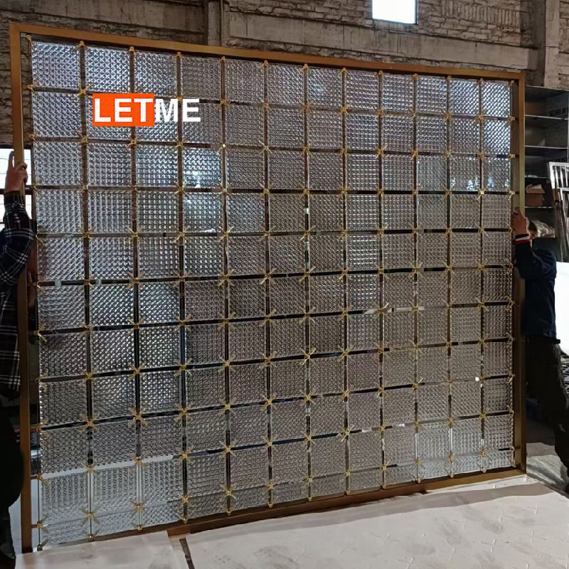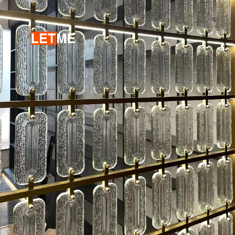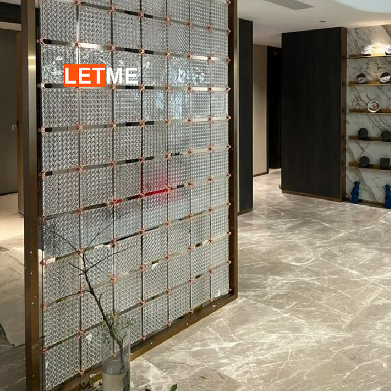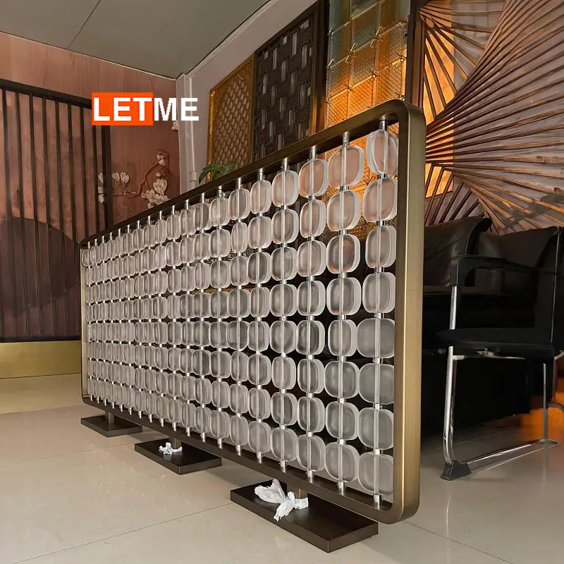 სივრცის გამყოფი ტიხარი აკრილის და უჟანგავი ლითონის დეკორატიული გამყოფი